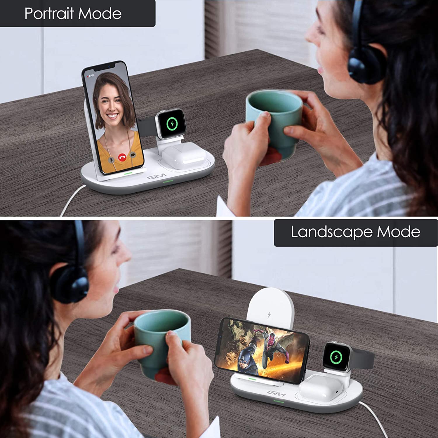 Eliberați-vă mâinile pentru a viziona filme, a studia online și a efectua apeluri video în timp ce vă încărcați fără fir.